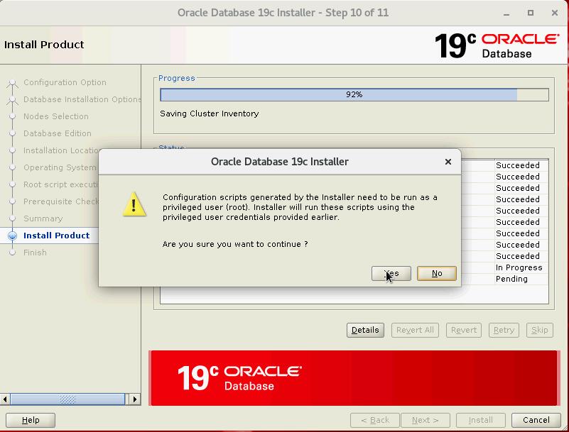 开始安装,点击yes按钮,执行root脚本。