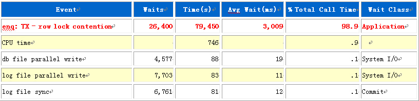 SYMPTOM: 等待类别 "应用程序" 消耗了大量数据库时间。 (99% impact [79450 sec