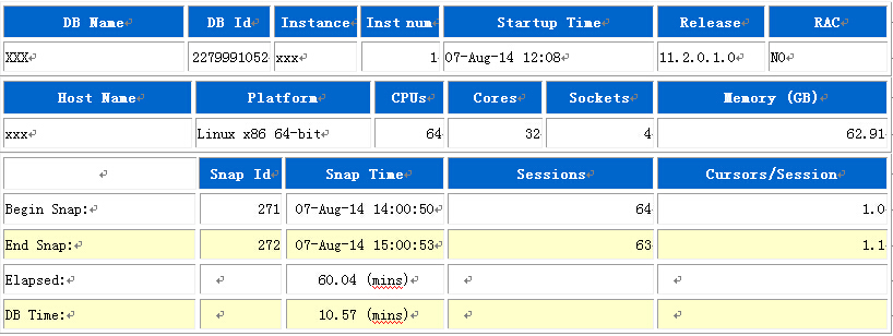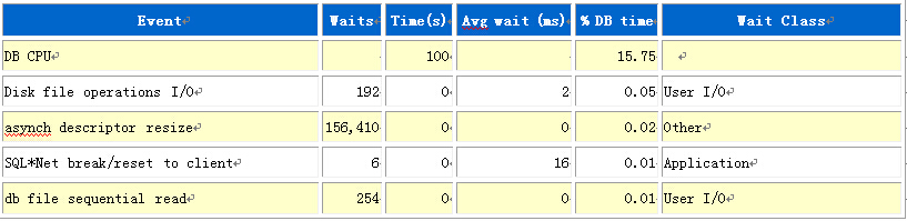 从这部分信息可以看出,数据库相当的闲,基本没有什么业务,从snap id可以看出,这个库刚创建不久,问了相关人员,他们说这是新建的库,数据刚迁过来,具体什么时候开始有这个问题的竟然没人知道,就说最近就很慢。