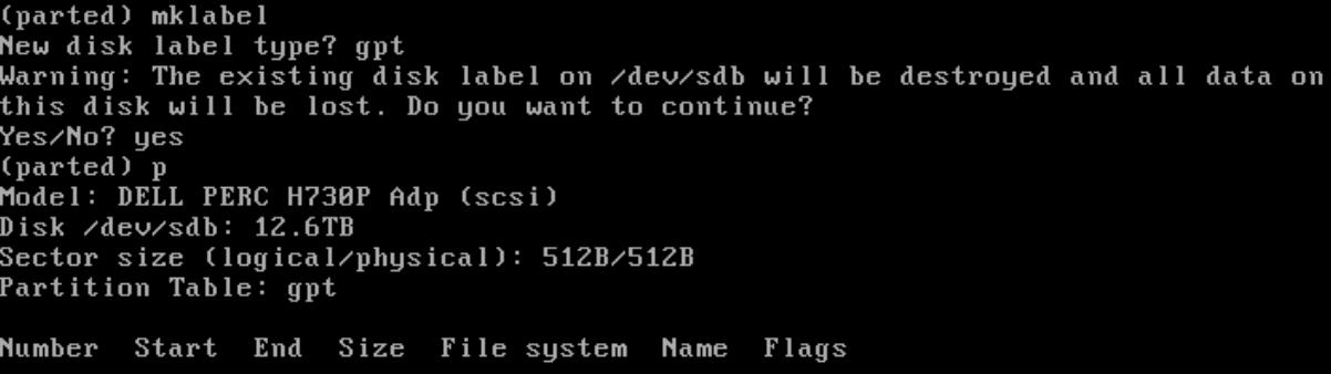 创建GPT格式的分区,需要是用parted命令,在正常安装系统界面,到创建磁盘分区界面,默认创建的是MSDOC格式的分区,如果分区超过2TB,通常就会遇到错误。